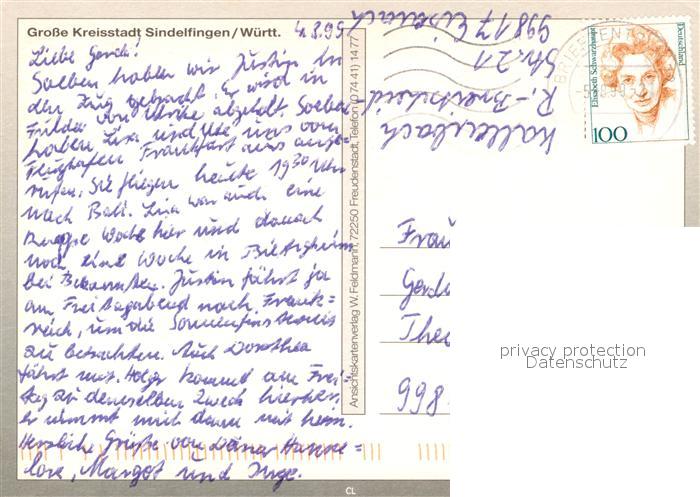 73269438 alte Postkarte Sindelfingen Fachwerkhaeuser Altes Rathaus Marktplatz Brunnen postalisch gelaufen Erhaltung siehe scans [WerneD78] KatCode: 11110008115045