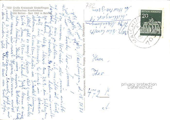 72606486 alte Postkarte Sindelfingen Fliegeraufnahme postalisch gelaufen Erhaltung siehe scans [NatalD47] KatCode: 11110008115045