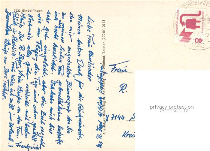 73647179 alte Postkarte Sindelfingen Fliegeraufnahme postalisch gelaufen Erhaltung siehe scans [WerneD78] KatCode: 11110008115045