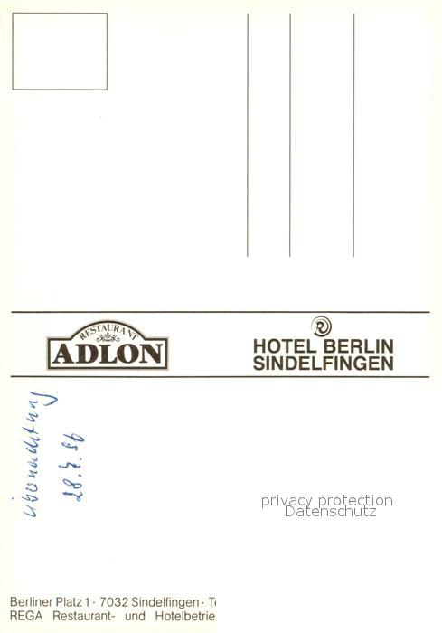 73653427 Sindelfingen Hotel Berlin Restaurant Adlon postalisch nicht gelaufen Erhaltung siehe scans [WerneD78] KatCode: 11110008115045