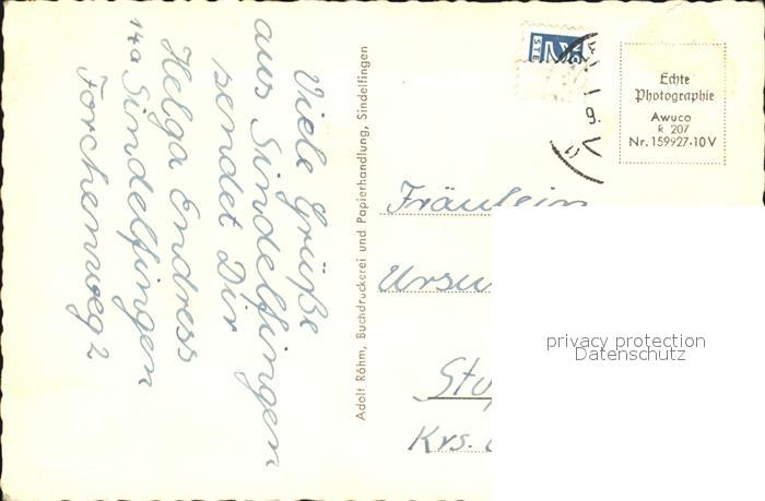 alte Postkarte Sindelfingen Marktbrunnen mit Kirche postalisch gelaufen Erhaltung siehe scans