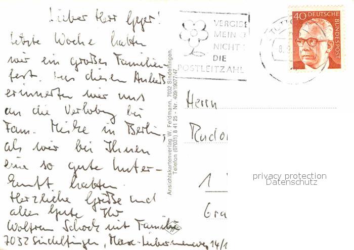 72811536 alte Postkarte Sindelfingen Martinskirche Altes Rathaus Festhalle Daimler Benz Werk Freibad postalisch gelaufen Erhaltung siehe scans [FriedD77] KatCode: 11110008115045