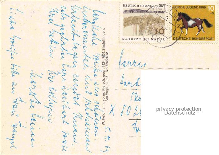 74023028 alte Postkarte Sindelfingen Rathausplatz IBM Krankenhaus Rathaus Stadthalle Goldbergturm Freibad Rotbuehl Daimler-Benz postalisch gelaufen Erhaltung siehe scans [FriedD77] KatCode: 11110008115045