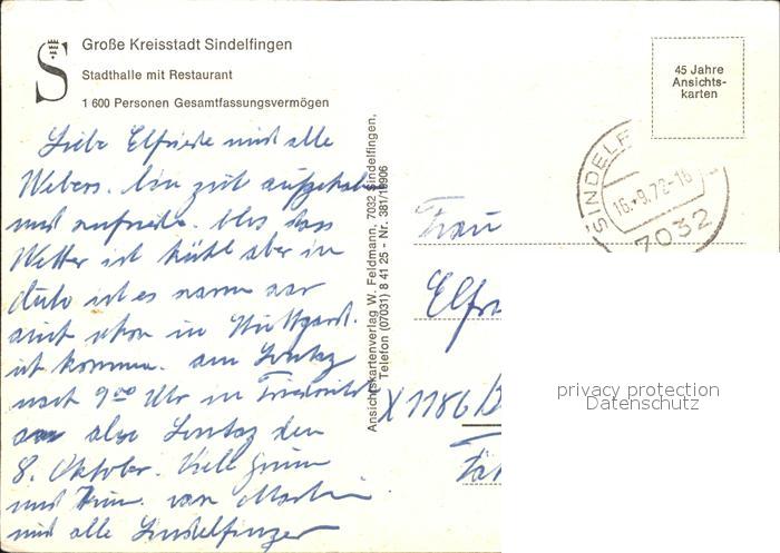 72579236 alte Postkarte Sindelfingen Stadthalle mit Park postalisch gelaufen Erhaltung siehe scans [LiesaD40] KatCode: 11110008115045