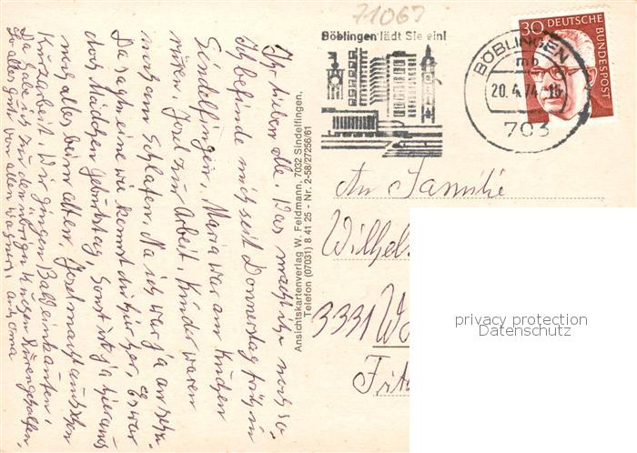 73866164 alte Postkarte Sindelfingen Teilansichten Turm Restaurant Wasserspiele Luftaufnahme postalisch gelaufen Erhaltung siehe scans [FriedD77] KatCode: 11110008115045