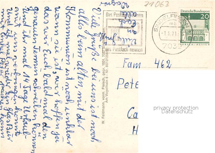 73866165 alte Postkarte Sindelfingen Teilansichten Turm Restaurant Wasserspiele Luftaufnahme postalisch gelaufen Erhaltung siehe scans [FriedD77] KatCode: 11110008115045