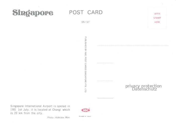 74092224 Singapore Changi International Airport Control Tower postalisch nicht gelaufen Erhaltung siehe scans [WerneD78] KatCode: 12250