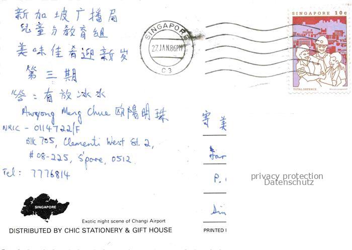 74092225 Singapore Changi International Airport Control Tower postalisch nicht gelaufen Erhaltung siehe scans [WerneD78] KatCode: 12250