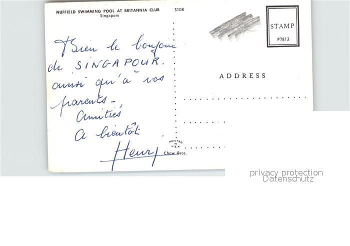 Singapore Nuffield Swimming Pool at Britannia Club postalisch nicht gelaufen Erhaltung siehe scans