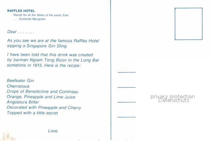Singapore Raffles Hotel postalisch nicht gelaufen Erhaltung siehe scans [LiesaD40]