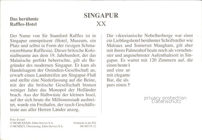 Singapore Raffles Hotel postalisch nicht gelaufen Werbekarte (keine Postkarte) Erhaltung siehe scans
