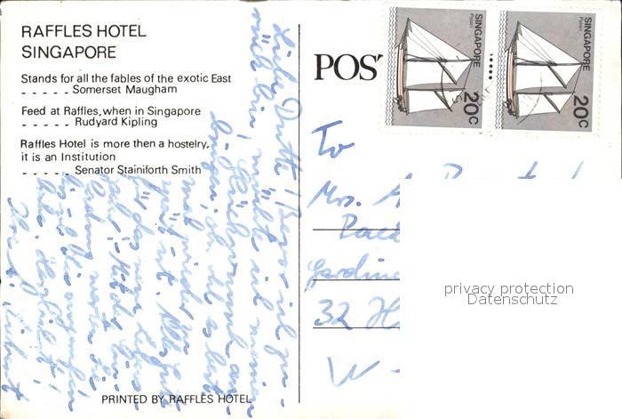 12440153 Singapore Raffles Hotel Zeichnung Künstlerkarte KatCode 12250