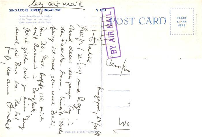 old postcard Singapore River postalisch gelaufen Erhaltung siehe scans [FriedD77]