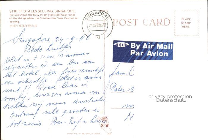 old postcard Singapore Street Stalls Selling postalisch gelaufen Erhaltung siehe scans