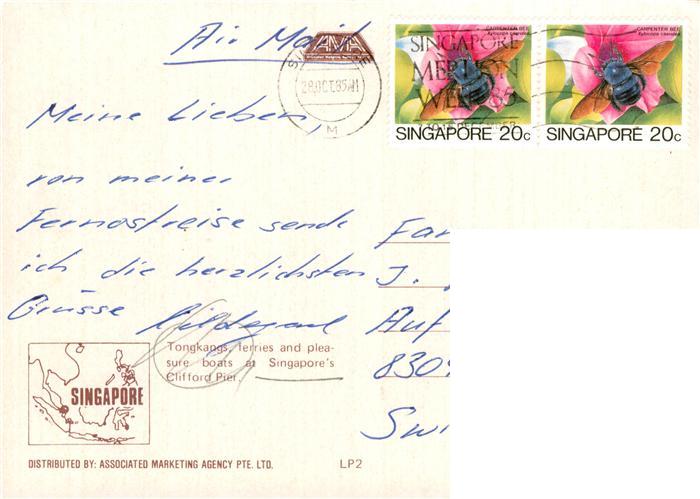 73918757 old postcard Singapore Tongkangs ferries and pleasure boats postalisch gelaufen Erhaltung siehe scans [WerneD78] KatCode: 12250