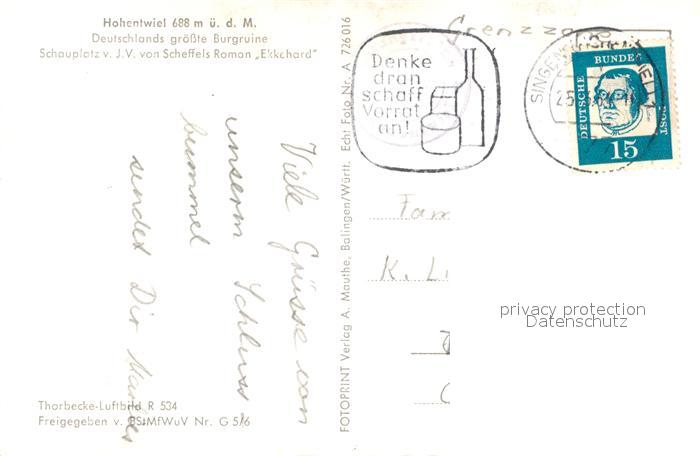 73550756 alte Postkarte Singen Hohentwiel Burgruine auf dem Hohentwiel postalisch gelaufen Erhaltung siehe scans [WerneD78] KatCode: 11110008335075