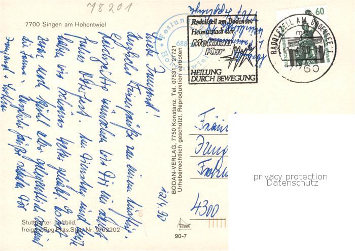 73322406 alte Postkarte Singen Hohentwiel Burgruine Festung Fliegeraufnahme postalisch gelaufen Erhaltung siehe scans [FriedD77] KatCode: 11110008335075