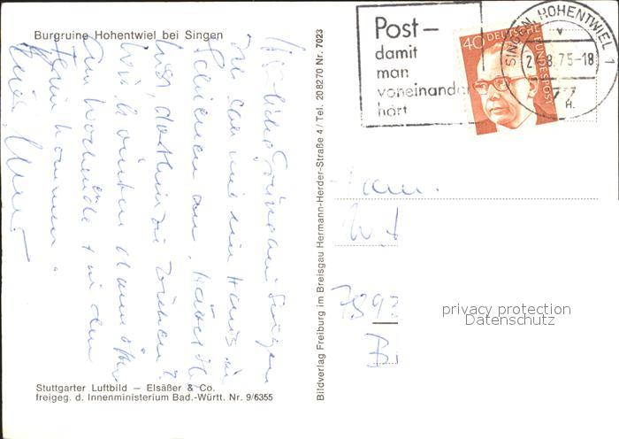 72277382 alte Postkarte Singen Hohentwiel Burgruine Fliegeraufnahme postalisch gelaufen Erhaltung siehe scans KatCode: 11110008335075