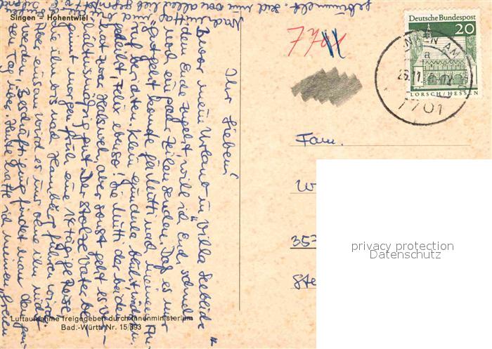 72907080 alte Postkarte Singen Hohentwiel Festungsruine Fliegeraufnahme postalisch gelaufen Erhaltung siehe scans [FriedD77] KatCode: 11110008335075