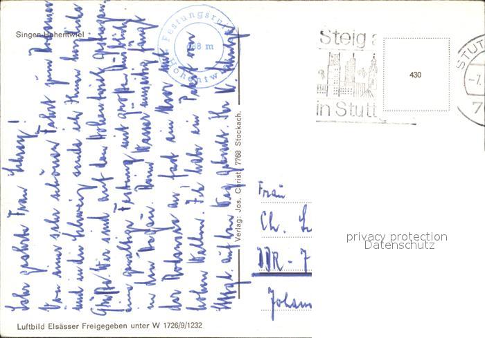 72533520 alte Postkarte Singen Hohentwiel Fliegeraufnahme postalisch gelaufen Erhaltung siehe scans [WerneD78 kt116box] KatCode: 11110008335075