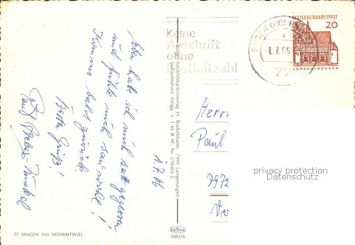72428185 alte Postkarte Singen Hohentwiel Fliegeraufnahme postalisch gelaufen Erhaltung siehe scans KatCode: 11110008335075