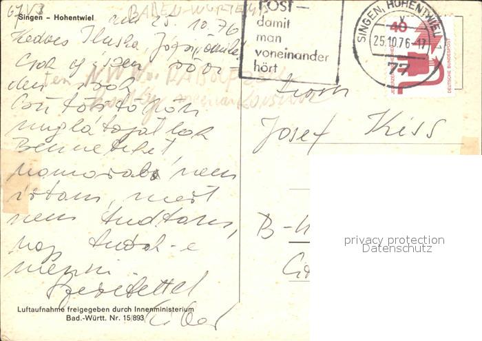 72235706 alte Postkarte Singen Hohentwiel Fliegeraufnahme postalisch gelaufen Erhaltung siehe scans KatCode: 11110008335075