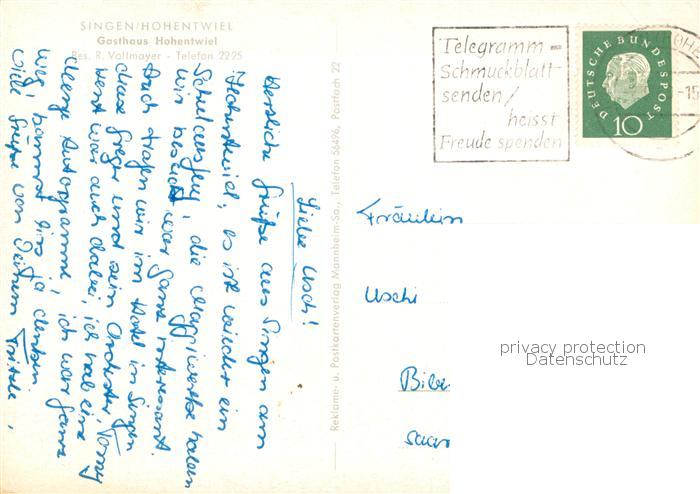 73780365 alte Postkarte Singen Hohentwiel Gasthaus Hohentwiel postalisch gelaufen Erhaltung siehe scans [WerneD78] KatCode: 11110008335075