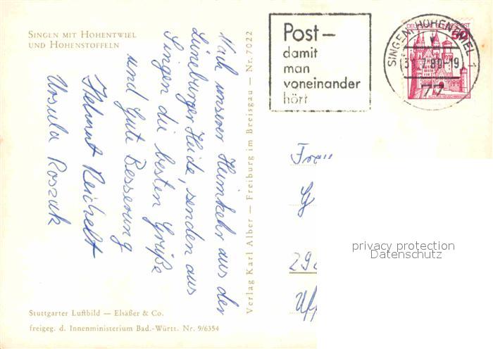 72795947 alte Postkarte Singen Hohentwiel Hohenstoffeln Luftbild postalisch gelaufen Erhaltung siehe scans [KathaD81] KatCode: 11110008335075