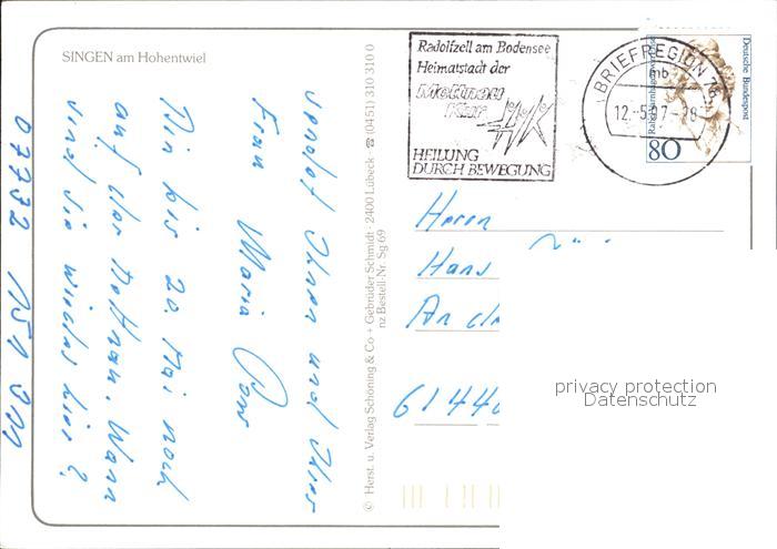 alte Postkarte Singen Hohentwiel Kirche Burgruine Schwimmbad Parkanlagen postalisch gelaufen Erhaltung siehe scans