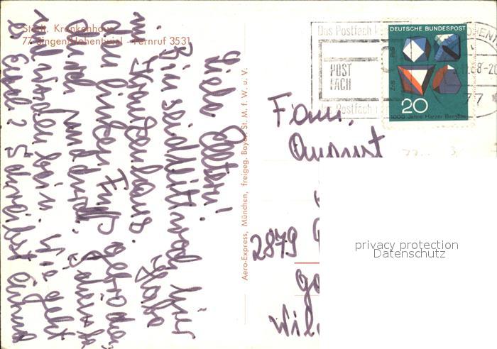 72577687 alte Postkarte Singen Hohentwiel Krankenhaus Fliegeraufnahme postalisch gelaufen Erhaltung siehe scans [FriedD77] KatCode: 11110008335075