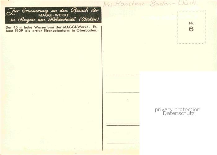 32664866 Singen Hohentwiel Maggi-Werke Wasserturm postalisch nicht gelaufen Erhaltung siehe scans [LiesaD40] KatCode: 11110008335075