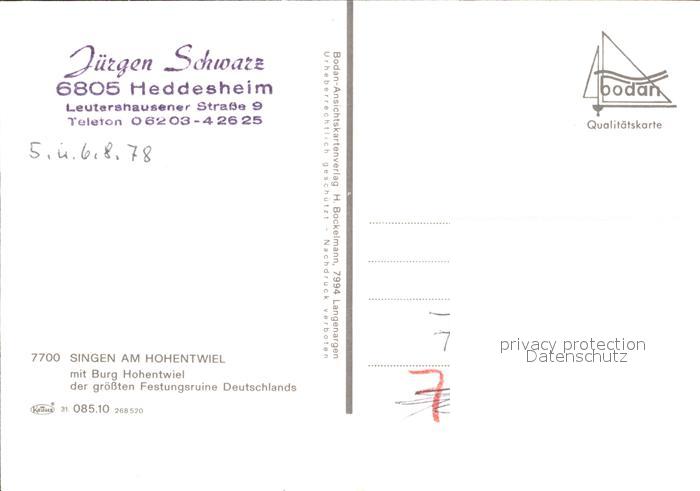 71932283 Singen Hohentwiel mit Burg Hohentwiel postalisch nicht gelaufen Erhaltung siehe scans KatCode: 11110008335075