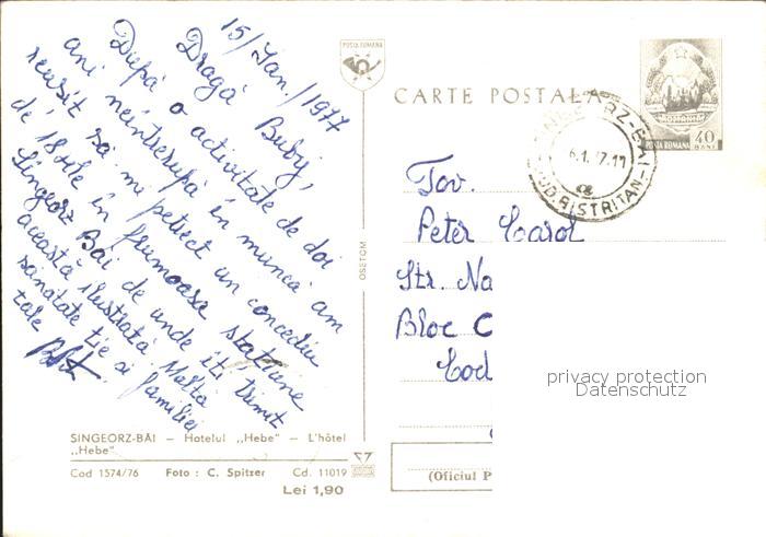 old postcard Singeorz-Bai Hotel Hebe postalisch gelaufen Erhaltung siehe scans