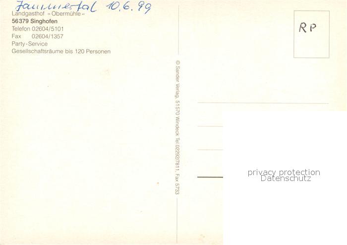 73616445 Singhofen Landgasthof Obermuehle Gastraeume postalisch nicht gelaufen Erhaltung siehe scans [WerneD78] KatCode: 11110007141129