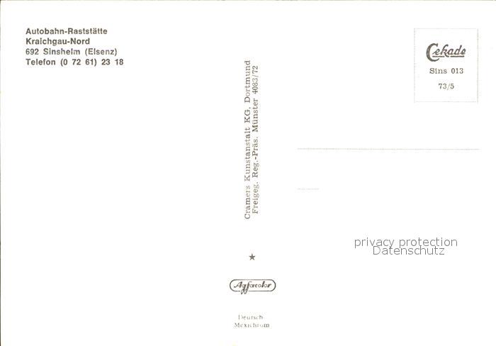 72545225 Sinsheim Elsenz Autobahn Raststaette Kraichgau Nord postalisch nicht gelaufen Erhaltung siehe scans [KathaD79 kv011box] KatCode: 11110008226085