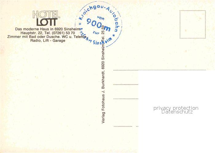 72886699 Sinsheim Elsenz Hotel Lott postalisch nicht gelaufen Erhaltung siehe scans [WerneD78] KatCode: 11110008226085
