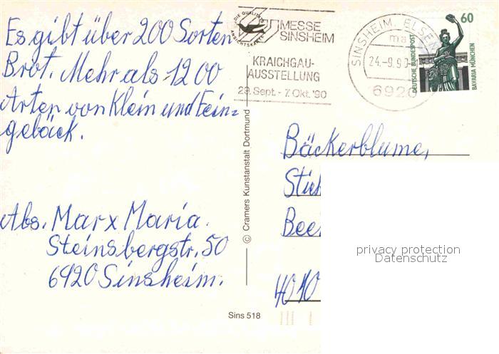 72744909 alte Postkarte Sinsheim Elsenz Museum Jugendstift Fussgaengerzone Alt Sinsheim Steinsfurt Lerchennest Fachwerkhaus postalisch gelaufen Erhaltung siehe scans [FriedD77] KatCode: 11110008226085