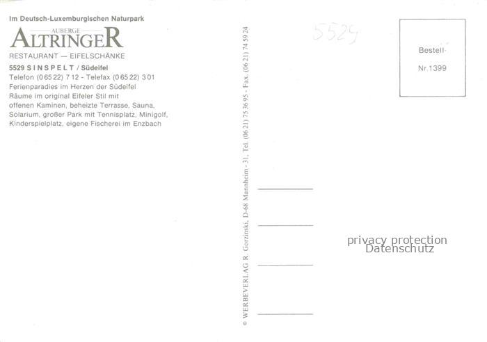 74055124 Sinspelt Auberge Altringer Park postalisch nicht gelaufen Erhaltung siehe scans [WerneD78] KatCode: 11110007232122