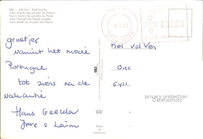 old postcard Sintra Through Palace arcades postalisch gelaufen Erhaltung siehe scans