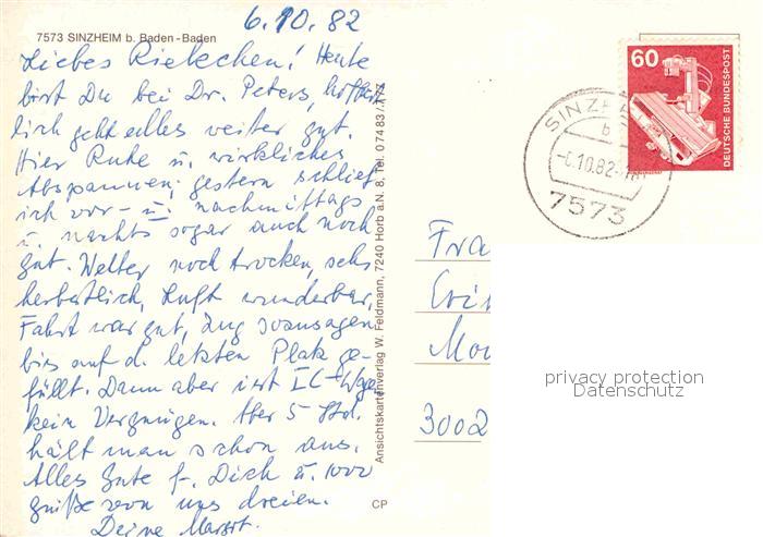72713052 alte Postkarte Sinzheim Fliegeraufnahme postalisch gelaufen Erhaltung siehe scans [LiesaD40] KatCode: 11110008216049