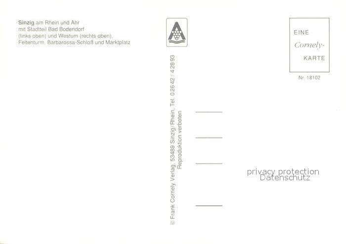 73269429 Sinzig mit Bad Bodendorf und Westum Feltenturm Barbarossa Schloss und Marktplatz postalisch nicht gelaufen Erhaltung siehe scans [WerneD78] KatCode: 11110007131077