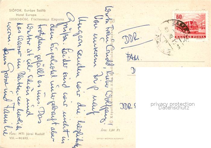 old postcard Siofok Europa Szallo Hotel postalisch gelaufen Erhaltung siehe scans [LiesaD40]