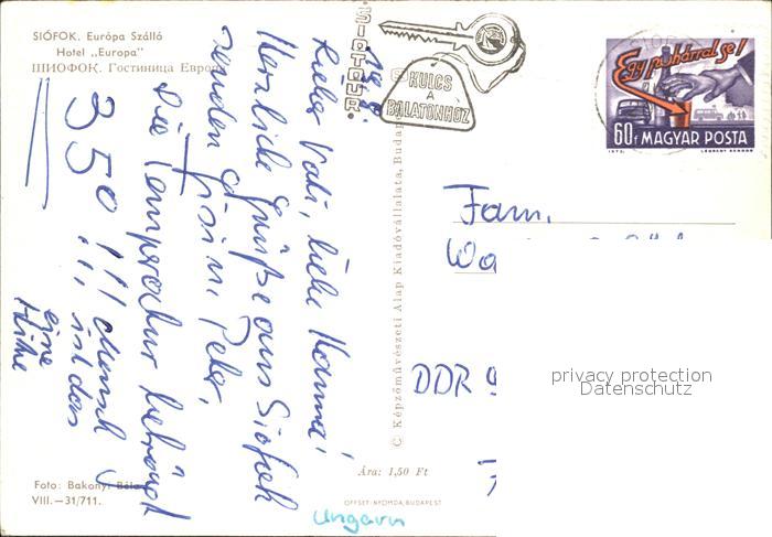 old postcard Siofok Europa Szallo Hotel postalisch gelaufen Erhaltung siehe scans