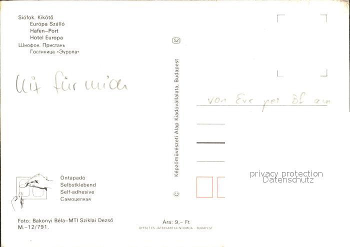 Siofok Hafen Port Hotel Europa postalisch nicht gelaufen Erhaltung siehe scans