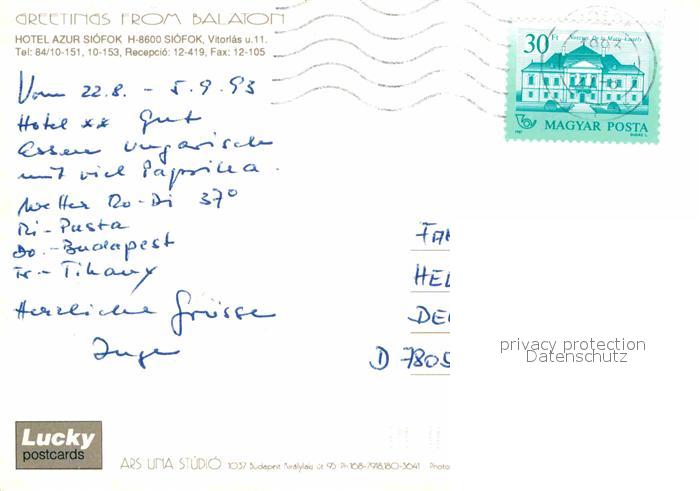 old postcard Siofok Hotel Azur postalisch gelaufen Erhaltung siehe scans [LiesaD40]