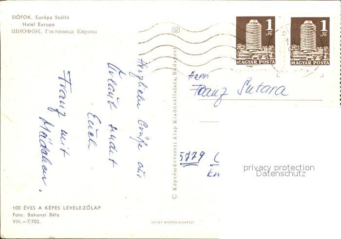 old postcard Siofok Hotel Europa postalisch gelaufen Erhaltung siehe scans