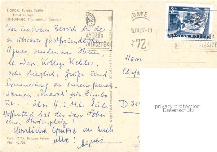 old postcard Siofok Hotel Europa postalisch gelaufen Erhaltung siehe scans [NatalD47]