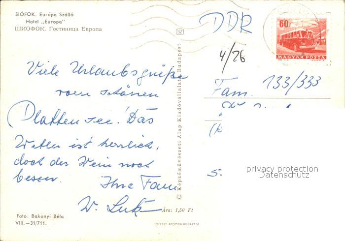 old postcard Siofok Hotel Europa postalisch gelaufen Erhaltung siehe scans
