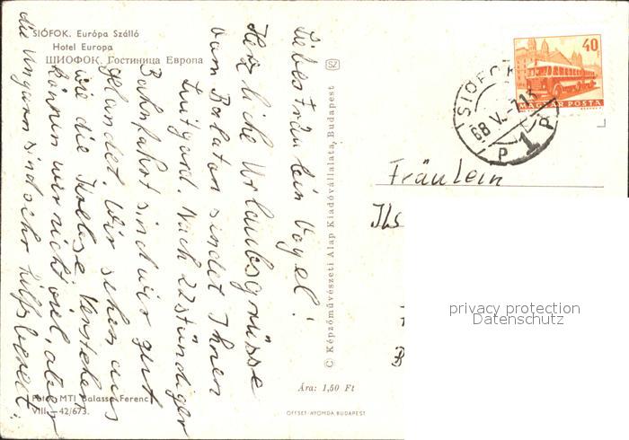 old postcard Siofok Hotel Europa postalisch gelaufen Erhaltung siehe scans