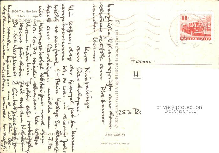 old postcard Siofok Hotel Europa postalisch gelaufen